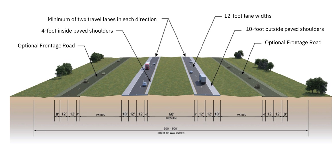 The planned Interstate will be between 300-500 feet wide.